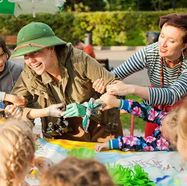А значит, нужно будет спасать слонёнка от крокодила, давать тумаки с помощью разрисованных гримом ладошек, общаться с артистами и друг с другом. У каждого ребенка своя роль!