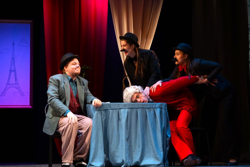 Озорной, энергичный, пленяющий зрителя своей жизнерадостностью спектакль Владимира Глазкова по мотивам старинных русских водевилей и комедии Ленского «Стряпчий под столом».