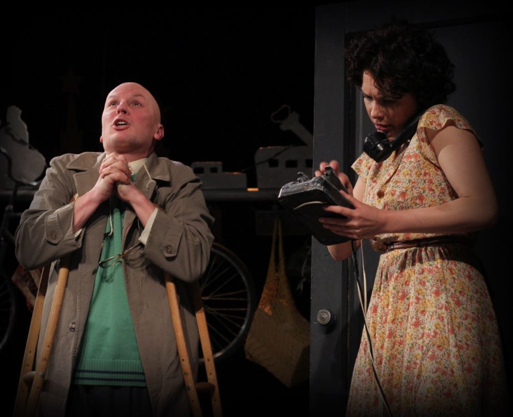 Открывают окно, высовываются в форточку, лезут на стремянку, поднимаются на крышу, надевают самые высокие каблуки; не выходит — пьют вино из чайных чашек, пишут стихи на манжетах, танцуют под хриплый приемник, чтобы хоть как-то, хоть чем-то заполнить «черную дыру в груди». При всей абсурдности, метафоричности текста в спектакле много ярких бытовых деталей, примет времени, кажется, так недавно ушедшего и еще так знакомого.