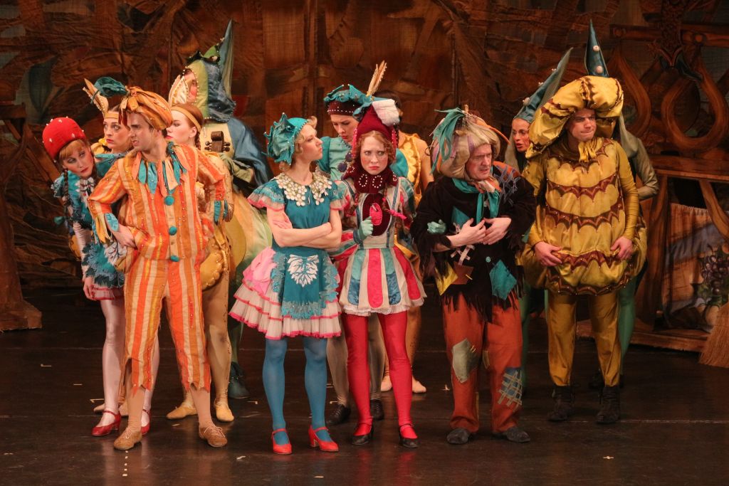 В спектакле «Чиполлино» детского драматического театра «На Неве» — именно такой. Перед началом на сцене живописное полотно: аппетитные фрукты и овощи, а в центре, как солнце, — светящаяся золотая луковица. Но вот спектакль начался, и перед нами уже бойкие человечки — персонажи известной сказки Дж. Родари. Отважный мальчик-луковка и его друзья живут своей насыщенной жизнью под жарким итальянским солнцем: они усердно трудятся и с удовольствием отдыхают (даже в театр ходят!), а когда случается горе, подбадривают друг друга веселой песенкой. Со стороны все это выглядит, как настоящий праздник красок: желтые Груша и Тыква; зеленые Виноградинка и Редиска; бордовый граф Вишенка… Даже «плохие» герои, красный Помидор и оранжевый Апельсин — к месту, ведь без них эта чудесная картина была бы неполной.