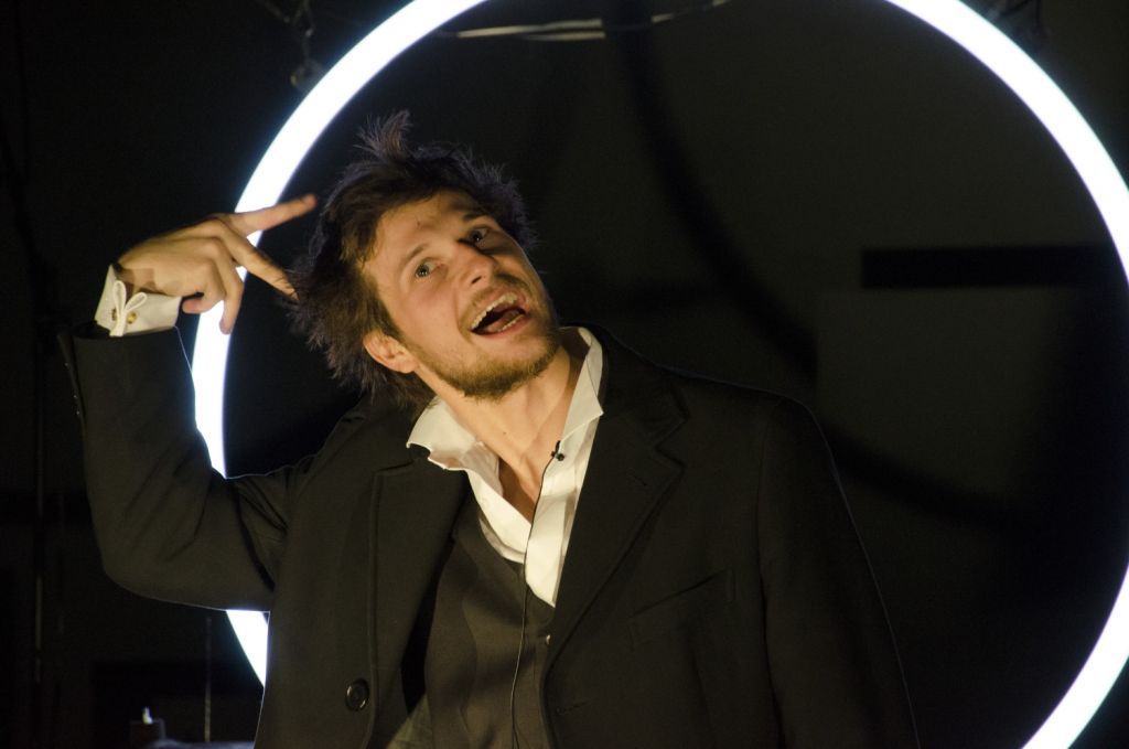 Жанр спектакля определён как «концертданеконцерт». Музыка живёт, конфликтует с героем, выходит из-под контроля. Звякает крохотной звездочкой, скрипит несмазанными петлями. Мечется, как безумная, от крестьянского танца к Тому Уэйтсу, заглушает исповедь этого «смешного человека». А он как будто нарисован Брейгелем — гримасничающий калека, карнавальный дурак, вдруг ставший главным героем мистерии.