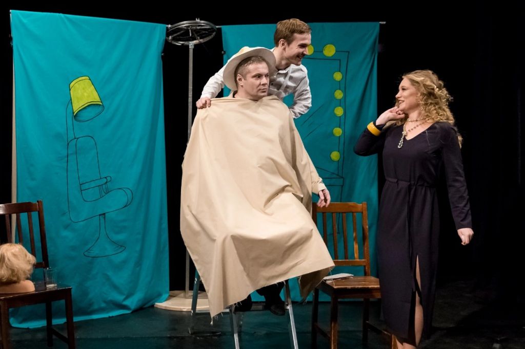 Герои весёлых рассказов: продавщица, шофёр, молодой тракторист, студент и студентка, таксист, сельская учительница, начальник, городская актрисочка, и, даже, Ангел в шляпе и пиджаке, который появляется в начале и в конце — талантливо воплощены молодыми артистами театра «Палитра».