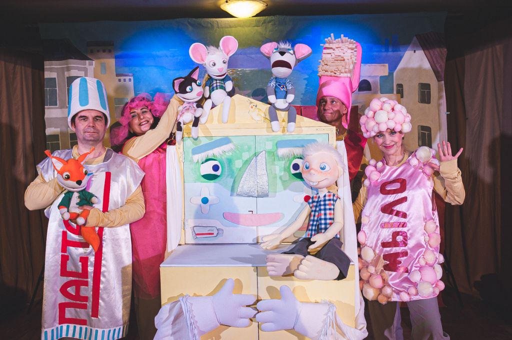 Правда, умывальник не выбегает, как у Чуковского, и не приступает с грозными наставлениями к малышам, но это и неплохо: никто не пугается, а все только весело хохочут. Потому что Мочалка, Зубная Щётка, Паста и Мыло своё дело знают – и веселят юных зрителей от души. А заодно и просвещают: когда нужно умываться, сколько раз чистить зубы, зачем мыть руки.