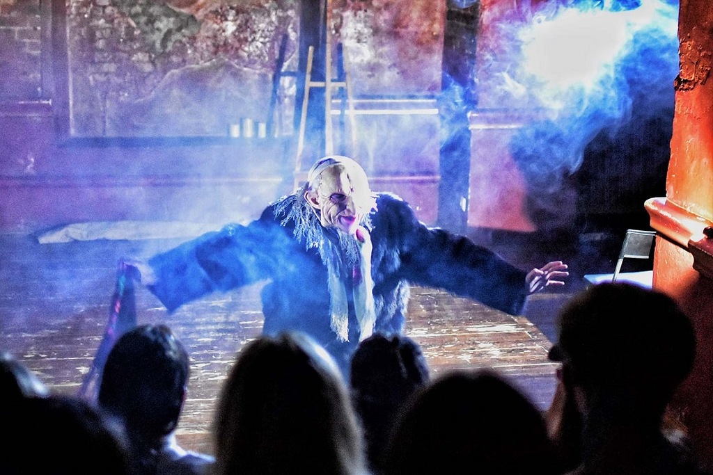 Идея создания мистического спектакля уже давно назревала. Аутентичные подвалы 18 века с кирпичными сводами — это ли не самое подходящее место для воплощения зловещей фантазии. Сюжет повести Алексея Толстого рассказывает о неких упырях, которые точь-в-точь похожи на зарубежных вампиров, но как сказал один из героев Рыбаренко: «Упырь — это чисто славянского происхождения». Поэтому в спектакле, который режиссеру Артуру Марченко как будто подсказало само пространство, вы увидите русскую версию зарождения упырей в человеческом мире.