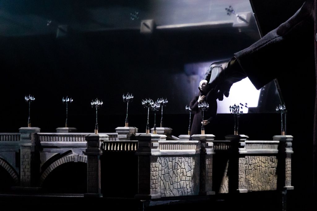 Можно не до конца разобраться в тонкостях карточной игры, но дело не в правилах. Германн, словно в квесте, блуждает по черно-белым улицам и мостам, коридорам и лестницам. Забыв об осторожности, он идет против своих принципов, походя ломая чужие судьбы. Подобные игры подразумевают двойников, и куклы как никто другой справляются с этой ролью, пугая и прельщая людей.