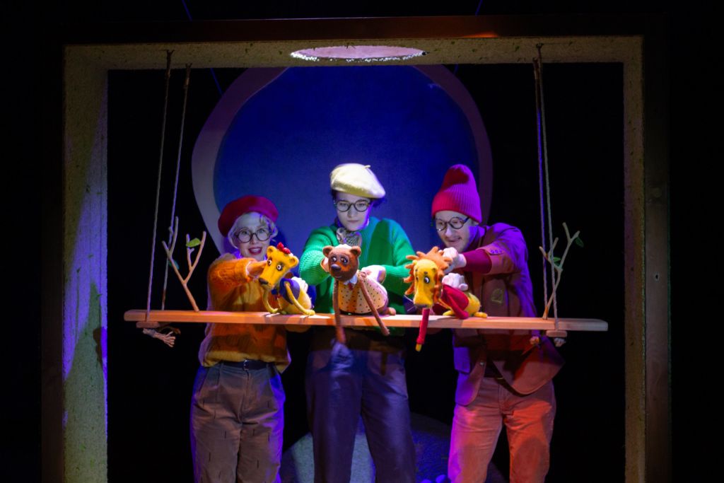Почему соседи, глядя на него, то и дело вздыхают: «Медведь в своём репертуаре!»? Может, дело в том, что он — очковый медведь, то есть чуть-чуть «помедвежистей»? Или в том, что он едва ли не больше, чем покушать, любит слушать радио, и всё ему интересно? То он летать учится, то петь, то с цветком на пригорке подружится...