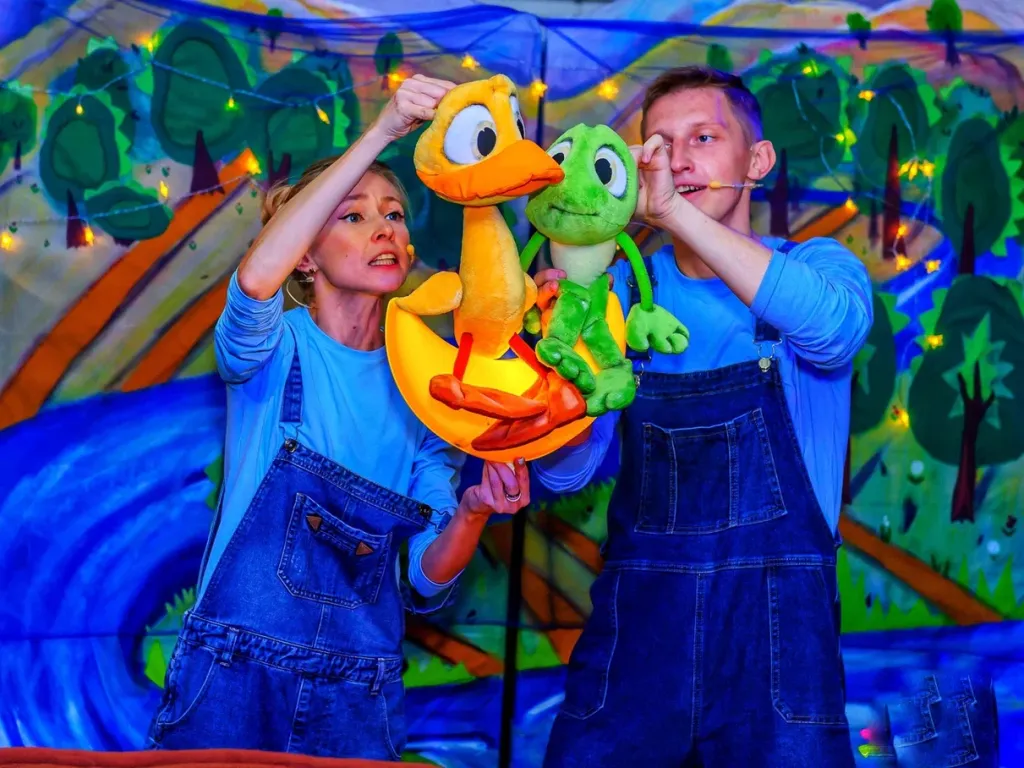 Малыши не просто смотрят сказку, но получают реквизит и помогают героям: Бобру — в строительстве плотины. Рыбкам — попасть домой. Смешной ящерице — вызвать дождик. Певцу- Лягушонку — отыскать потерявшихся солистов его знаменитого Хора на закате и др. Ну и узнаем, наконец... удастся ли юному Утенку-непоседе найти звезды!