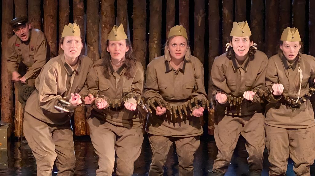 Постановка Свердловского театра драмы рассказывает свою историю о хрупкости и нежности, подвергнутой испытаниям. Знаменитый текст переосмысливается как притча, но всё-таки следует канону. При этом спектакль отдаёт дань первому сценическому воплощению Юрия Любимова — одному из самых известных повествований о Великой войне и месте женщины во время тех страшных событий.