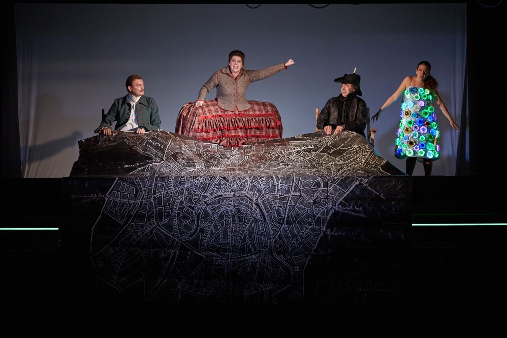 Чтобы зрители могли оценить обновленное пространство Сцены на Сретенке (архитектор Сергей Куцевалов), было решено провести их по всем помещениям сцены: буфету, гардеробу, фойе. Также действие спектакля происходит на лестницах, на складе и в других служебных помещениях.