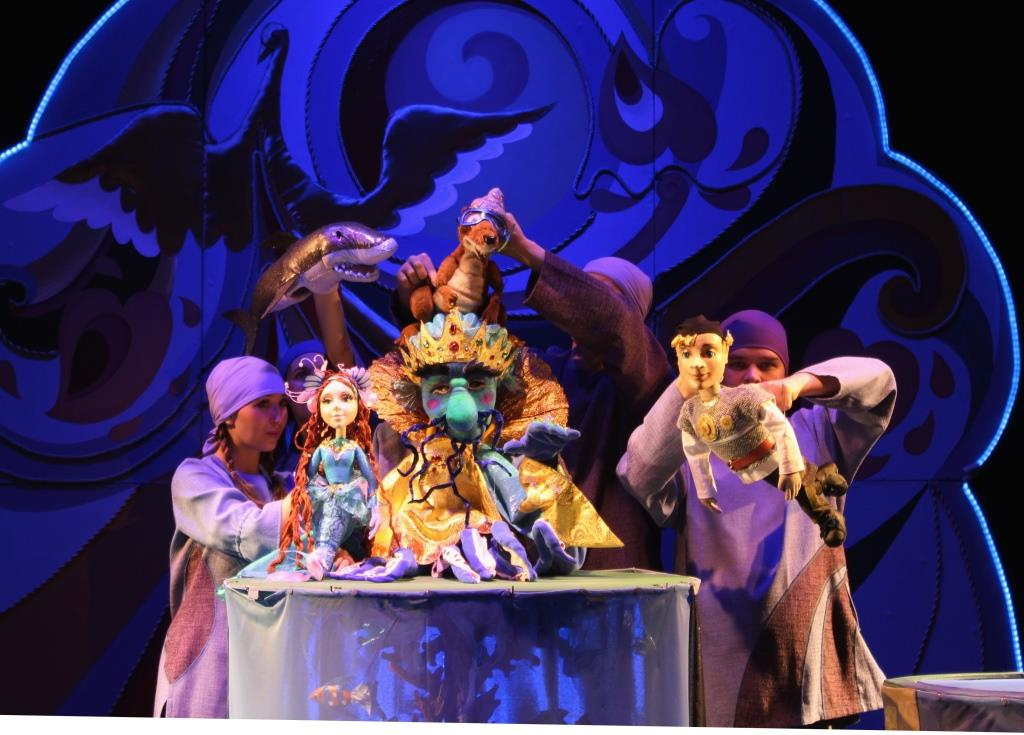 В спектакле работают планшетные куклы и актеры в живом плане.