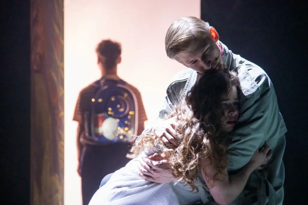 Главная особенность спектакля — необычный ракурс повествования: история рассказана глазами ребёнка. Ещё не родившийся сын Кати и Мити, обитатель удивительного мира детства, играет в «суд». Через призму детского восприятия он ищет универсальную формулу любви, поставив перед собой задачу любой ценой примирить родителей. Метафизические и художественные образы, полные иронии и светлой грусти из которых соткан спектакль, магическим образом складываются в глубокое размышление о природе любви и верности.