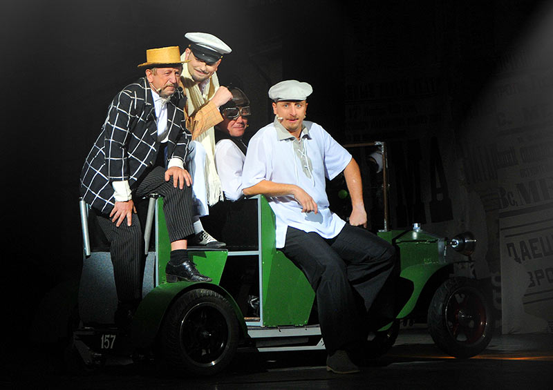 Динамичное действие, зажигательные танцы, острые коллизии и колоритные образы создают атмосферу начала 30-х годов ХХ века, яркого красочного праздника авантюрной жизни популярных героев увлекает публику в мир безудержного веселья, не растеряв по пути написанную Ильфом и Петровым социальную сатиру. Интересно и художественное решение спектакля, его колорит мягкий, светлый, золотисто-бежевый, словно старое фото, немного потемневшее, но не утратившее своего шарма и актуальности. Наша версия постановки рассчитана на самый широкий круг зрителей, в ней оригинально сплетены новизна постановочных решений, зрелищность и лаконичность.