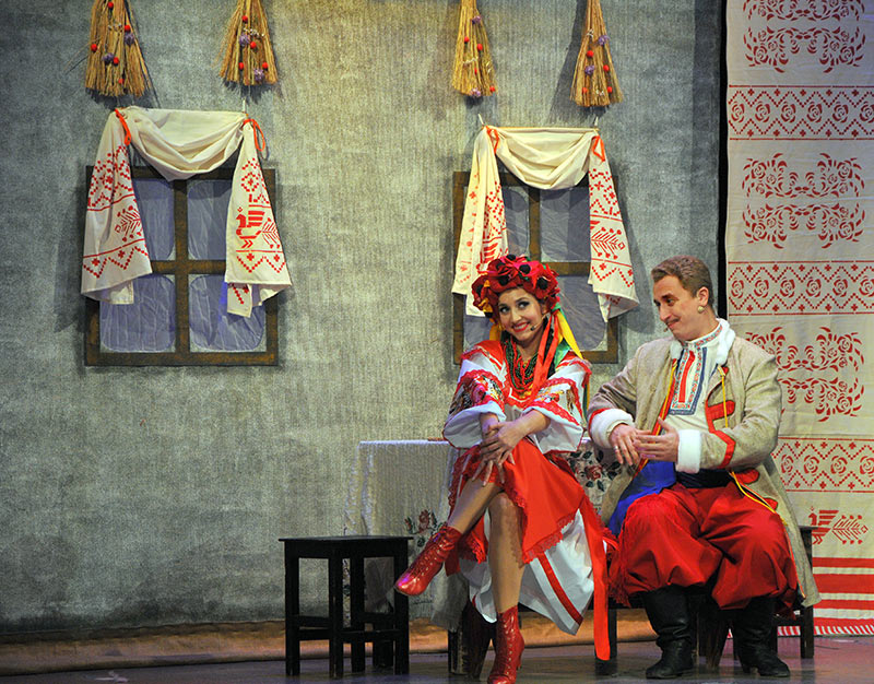 С первых минут действия зрители попадают на сказочный праздник, где чёрт крадёт месяц с неба, летают вареники и танцуют мешки... Зрелище пестрит яркими красками костюмов и декораций, звучит задорная музыка, песни и танцы — одним словом здесь есть все, что бы отдохнуть и отвлечься от рядовых будней.