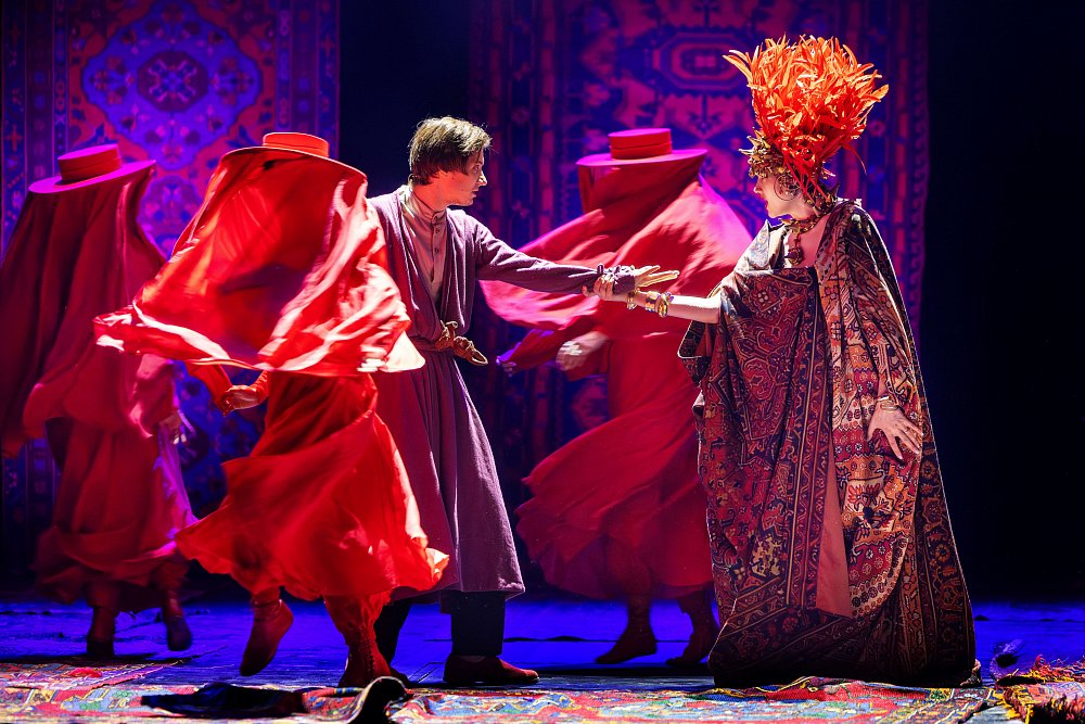 Восток древний и современный, Восток пряный и разноцветный оживает на большой сцене Маяковки вокалом и танцами, живой музыкой, полётами, трюками и превращениями, традиционными восточными коврами и современным видео-артом. Вновь хитрость побеждает силу, а Багдадский вор, минуя испытания Подземными толчками, Смерчем и даже Восточными сладостями (в исполнении молодых артистов Маяковки) завоёвывает возлюбленную Фатиму.