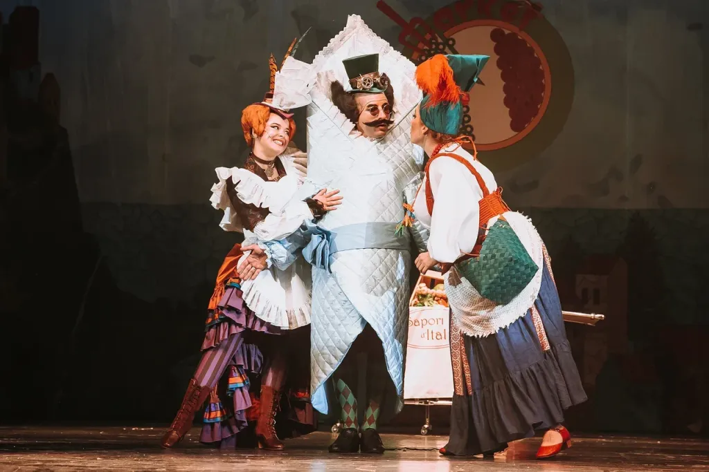 Знакомая история в неожиданном прочтении: Карабас-Барабас — харизматичный театральный менеджер, лиса Алиса и кот Базилио — мечтатели, грезящие о сцене, а черепаха Тортилла — эффектная джазовая дива с командой ловких черепашек-хранителей золотого ключика.