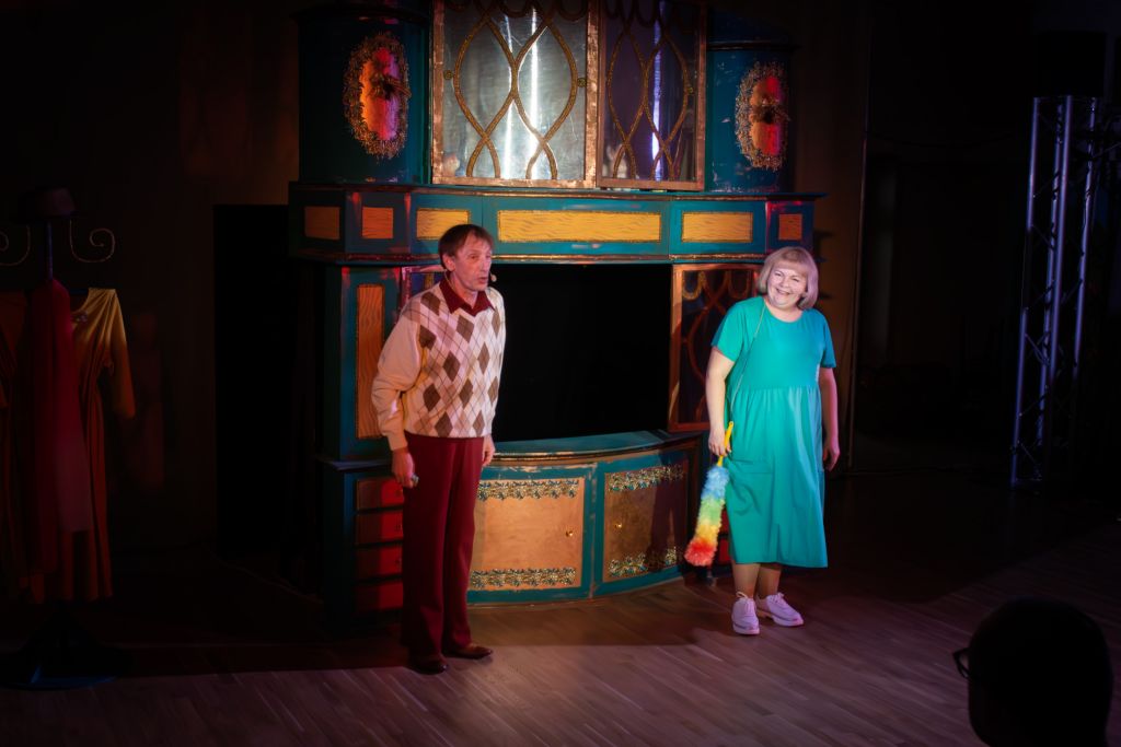 Здесь же — на малой сцене театра — вдруг оживут, заговорят и запоют всегда доселе молчаливый шкаф и все его многочисленные обитатели: чашки, чайник, гранёный стакан, металлические ложки, тарелки и даже бейсболка папы.