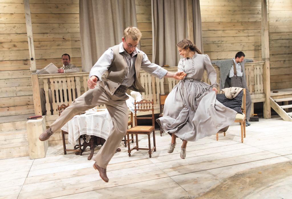 Уютная деревянная веранда, куда сквозь льняные шторы проглядывает летнее солнце. Тургеневские барышни спасаются от палящего зноя изящными шляпками с широкими полями, кружевными зонтиками, домашним мороженым и холодной водой из ручья, протекающего прямо посреди сцены. Аккомпанементом пению птиц становятся романсы Бетховена. Именно в этот русский оазис, в этот дом, дышащий теплом и уютом, где совсем не хочется говорить ни о политике, ни об общественных воззрениях и приезжает в мае 1859 года Аркадий Кирсанов вместе со своим другом Базаровым…