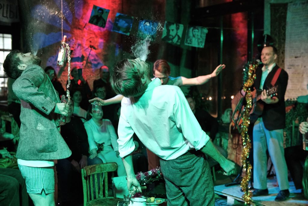 Ведь всё происходит на своего рода коммунальной кухне: как водится — у каждого свой стол и комфорка. И каждый сможет помочь последним приготовлениям к празднику — нарезать колбасу, открыть шпроты или трёхлитровую банку берёзового сока.
