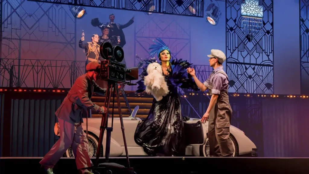 Благодаря трансформирующимся декорациям и спецэффектам, мгновенно меняющим сценическое пространство, зрители становятся не только свидетелями, но и, практически, участниками съемочного процесса в котором сцена превращается то в киностудию, то в залы и парк посольства, то в знаменитый ресторан Maxim’s.