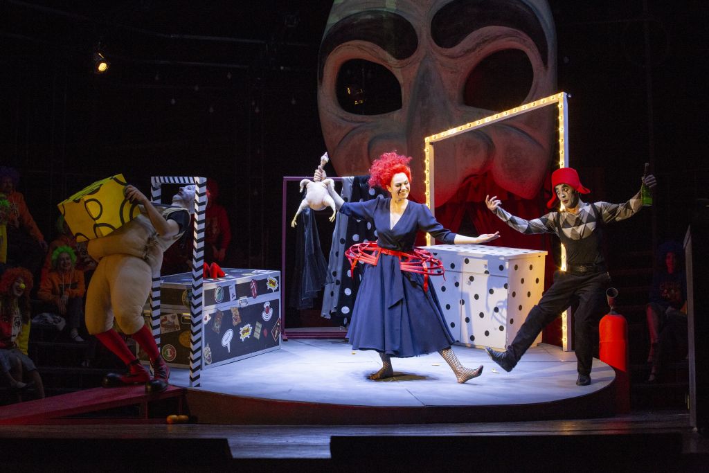 «Паяцы» – опера о театре, и в постановке сочетаются три ее плана: традиционную, даже примитивную комедию дель арте разыгрывает гастролирующая труппа, среди ее актеров бушуют реальные страсти, на сегодняшней сцене весь этот «театр в театре» представляют наши артисты.