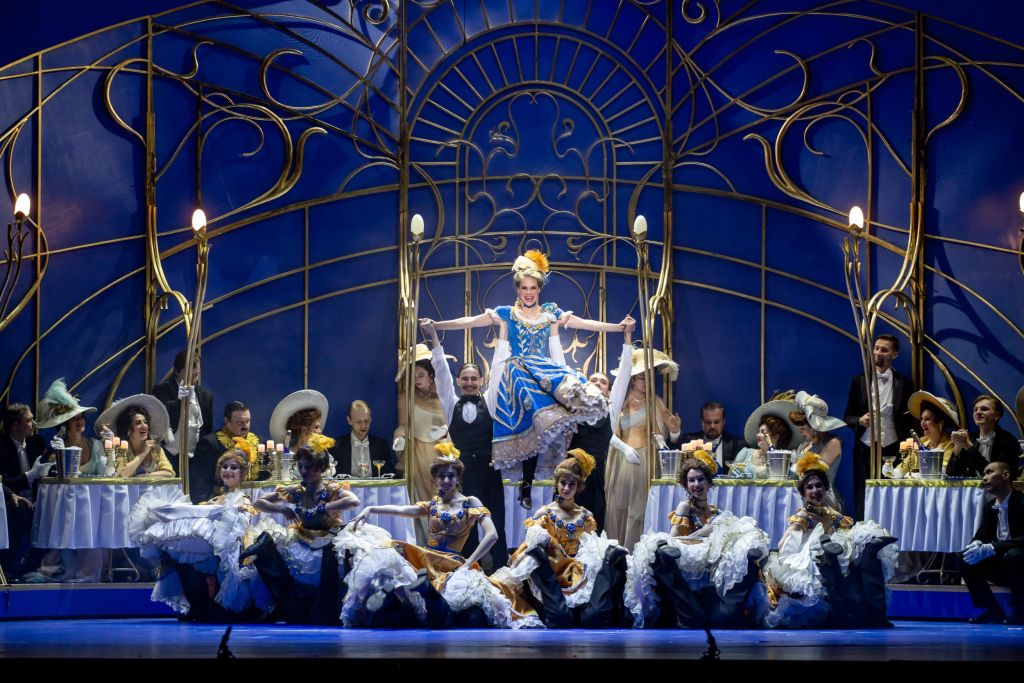 Впервые появившись на сцене ленинградской музкомедии в 1935 году, «Весёлая вдова» вот уже больше восьмидесяти лет регулярно возвращается в её афишу. А новый спектакль — седьмая версия этого шедевра Франца Легара, известного во всём мире в том числе благодаря знаменитому канкану (второму по популярности после канкана Ж. Оффенбаха). Кстати, в новом спектакле этому танцу уделено особое внимание. Ведь постановщик — Джорджо Мадиа — в недавнем прошлом успешный балетный танцор, а сегодня востребованный хореограф и создатель более двадцати оперных и балетных спектаклей в Германии, Польше и Италии.