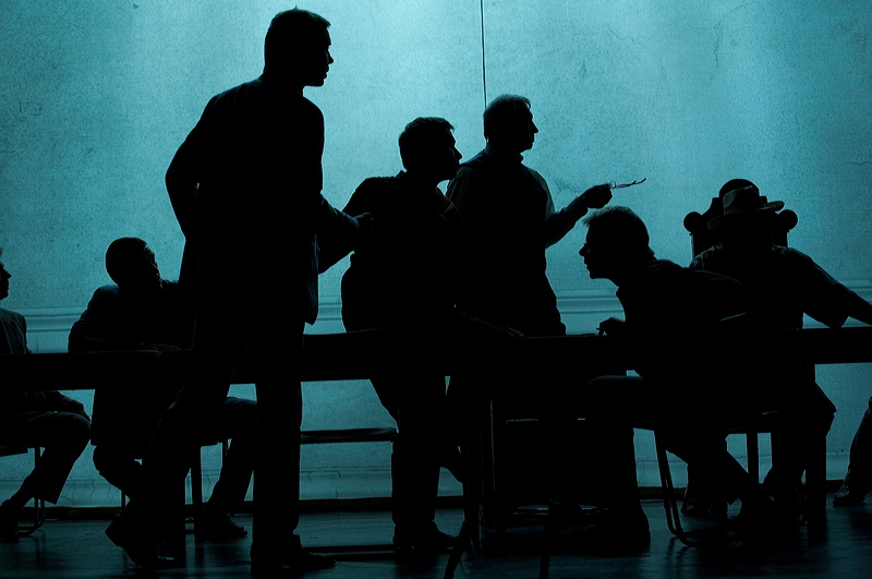 Запертые в комнате после суда, они еще не знают, что для них эта комната станет не то чистилищем, не то предощущением Страшного суда…