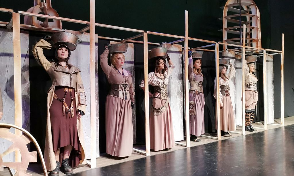 «Петербургские повести» Н. В. Гоголя – это галерея грехов человеческих с их развитием от начального этапа до точки невозврата. Три русских социальных архетипа: военный, чиновник и художник проходят путь бесконечного стремления к наслаждениям, и путь каждого получает своё логическое завершение. Спектакль «Нос в белую ночь» – это карнавал грехов, где мистический гоголевский Невский проспект превращается в подиум между Жизнью и Смертью, и на этом подиуме проходит дефиле пороков, властно захватывающих человеческое существо. Художественная сторона спектакля решена в стиле steampunk: механистические детали, ремни, зубцы и шестерёнки, из которых вырастают фантасмагорические образы… Steampunk как внешнее выражение внутреннего превращения человека в механизм.