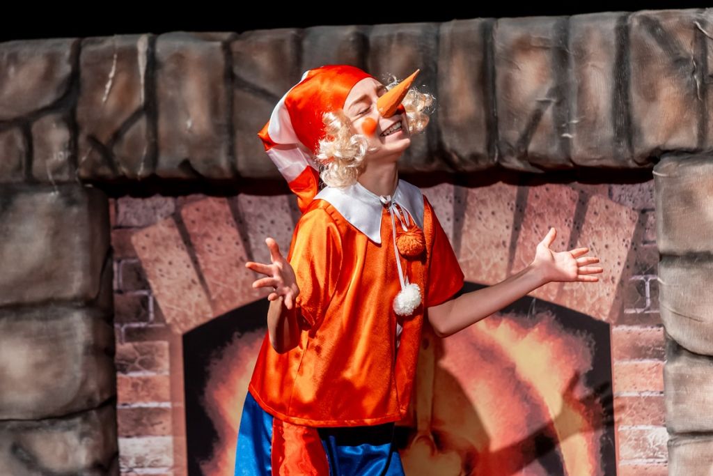 Музыкальный спектакль по мотивам сказки А. Толстого «Золотой ключик». Старая сказка рассказанная по-новому для детей от 3 лет до 70 лет. Легкая, графичная с прекрасной музыкой петербургского композитора О. Петровой. Оригинальность спектакля в том, что на сцене профессионального театра роли кукол исполняют талантливые актеры-школьники, лауреаты и дипломанты разных конкурсов и фестивалей.