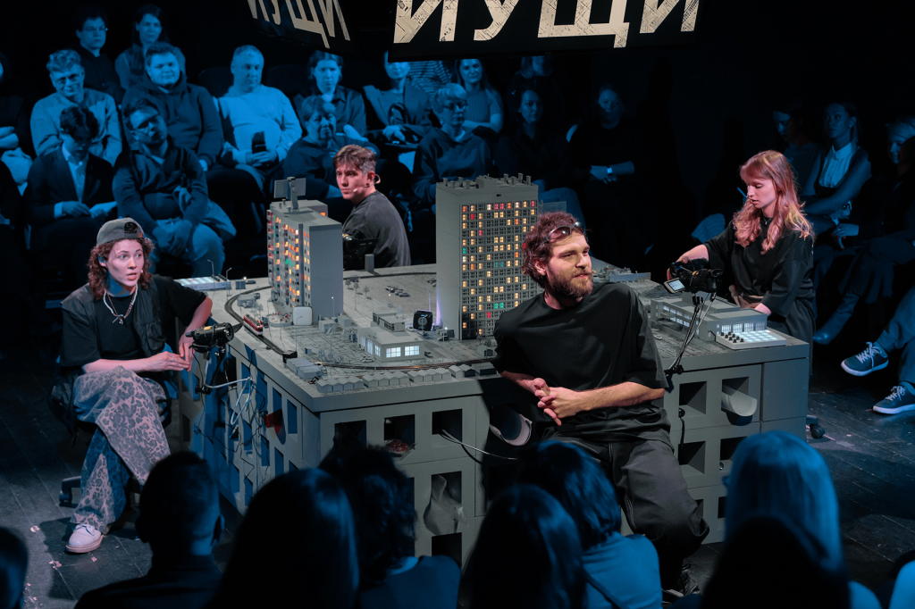 Чтобы без пафоса исследовать человеческий космос, артисты не будут примерять на себя чужие роли, а станут лишь проводниками от персонажей к зрителю. Настоящих героев спектакля — красивых, нелепых, горьких и легко узнаваемых жителей густонаселённых многоэтажек — воплотят крошечные фигурки горожан, застывших в разных позах. Фрагменты их повседневности поймает и передаст на большие экраны ручная камера.