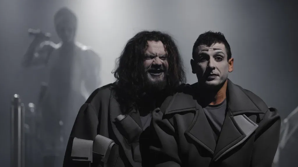 В своём по Достоевскому постановщики обратились к стилистике комедии дель арте, чтобы подчеркнуть карнавальную (по мнению философа Бахтина) природу романа. Правда, весёлого в спектакле немного. Пусть вас не вводят в заблуждение клоунские костюмы и лица-маски — за ними скрываются все пороки этого мира: жадность, агрессия, высокомерие. Но внимательный зритель легко разглядит и все слабости героев — неуверенность, безволие, зависимость.