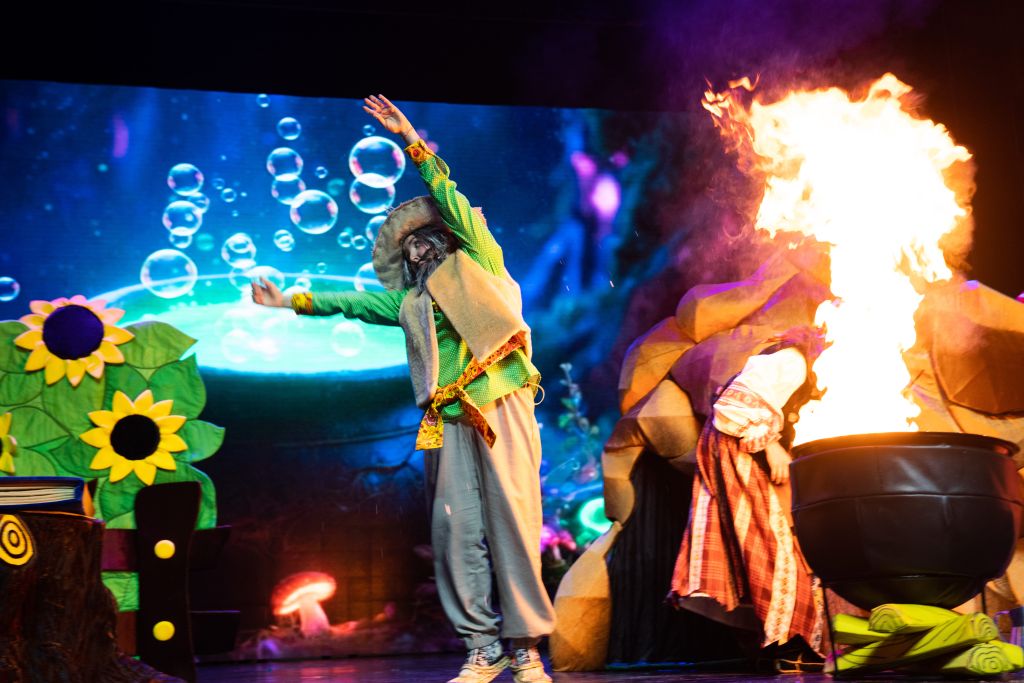 В нашем спектакле вы встретите настоящую магию, где в котле делает химические опыты «Баба Яга», большие молнии от «Тесла» машины, необычные появления на сцене, завораживающие мыльные пузыри и много маленьких чудес.