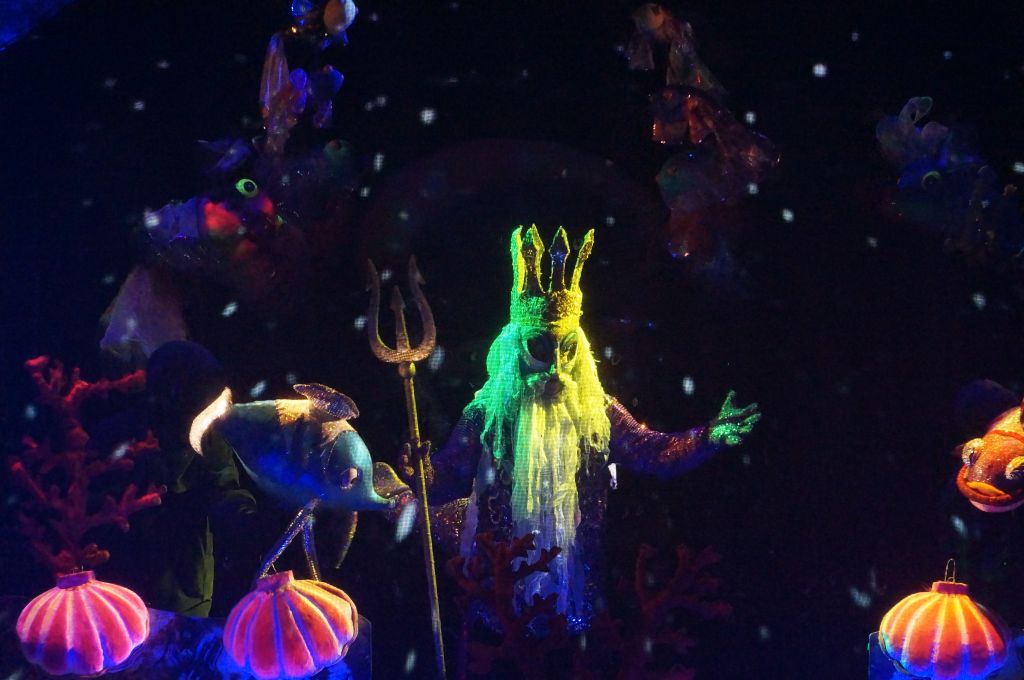 Изумительная трогательная сказка вылилась на сцене театра в грандиозный феерический суперспектакль. Интересно используются достижения театральной техники — светомузыка, смелые конструктивные решения системы вождения кукол, суперсовременные технологические материалы и краски. Вследствие этого достигается эффект «подводного царства» и поразительный фокус панорамного изображения стереопространтсва.