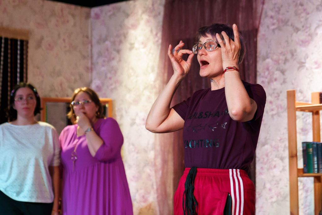 Комедия абсурда. Пьеса Антона Финка, в которой три подруги с бурными поздравлениями врываются в дом четвёртой, чтобы устроить «праздник».