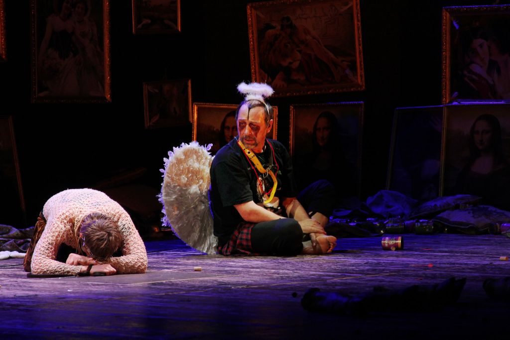 У Коляды нет Гамлета, которого можно обвинить в нерешительности, слабоволии, как нет и Гамлета — борца, обличителя зла, а именно к этим двум вариантам традиционно сводятся известные нам трактовки. В спектакле звучит скорее тема Гамлета-жертвы. Принц Датский в исполнении Олега Ягодина, оставшись один на один с мучителями, не может не чувствовать, что они сильнее его. Да и вообще разве человек не жалкая игрушка в руках судьбы? Он беззащитен в мире, лишенном смысла и совести».