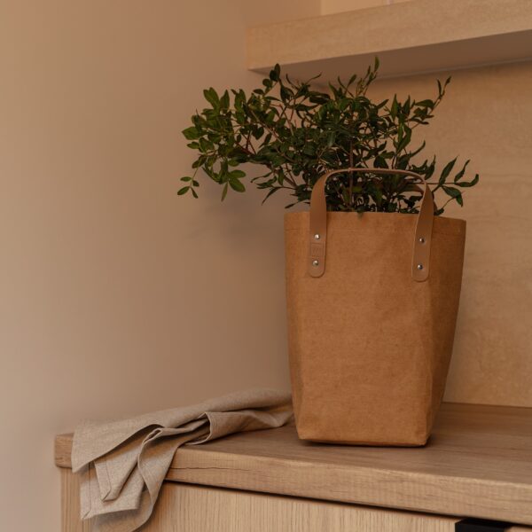 Pelican Medium — корзинка для дома, выполненная из крафтовой бумаги с ручками из натуральной кожи.