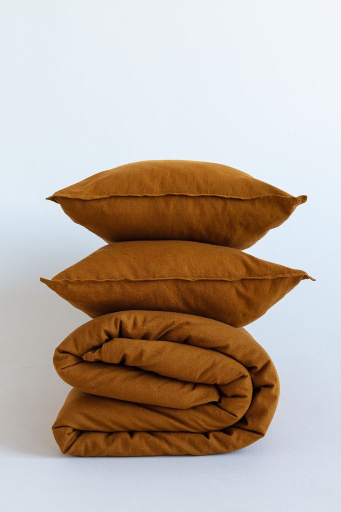 Постельное белье из натуральной хлопково-льняной ткани с эффектом мятости. Постельное белье не требует глажки. Мягкое и приятное к телу. Комплект в сочном тепло-горчичном цвете станет ярким акцентом в вашей спальне. Стильная волокнистая текстура подчеркнет натуральность интерьера, создаст теплую и уютную атмосферу в спальне.