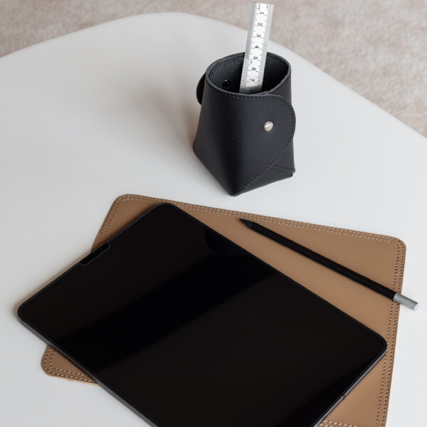 Минималистичное изделие из натуральной кожи прекрасно дополнит любой рабочий стол в офисе или дома.