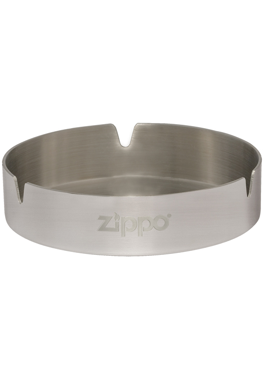Массивная пепельница из нержавеющей стали украшена гравировкой с логотипом Zippo в трех местах. Внушительный вид, солидный вес. Диаметр 10,16 см; упакована в полиэтиленовый пакет и белую картонную коробочку.
