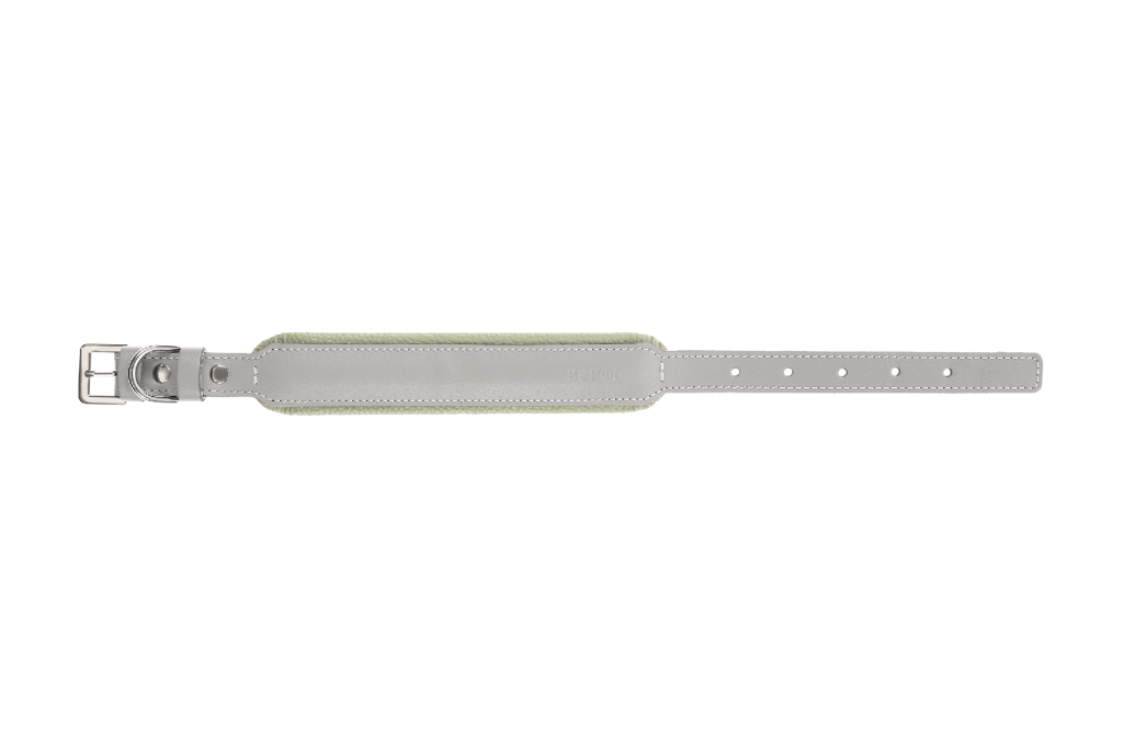 Прямой ошейник из натуральной кожи двух видов с мягкой подушкой. Подходит для небольших пород собак.