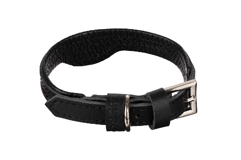 аПрямой ошейник из натуральной кожи двух видов. Подходит для кошек и маленьких пород собак.