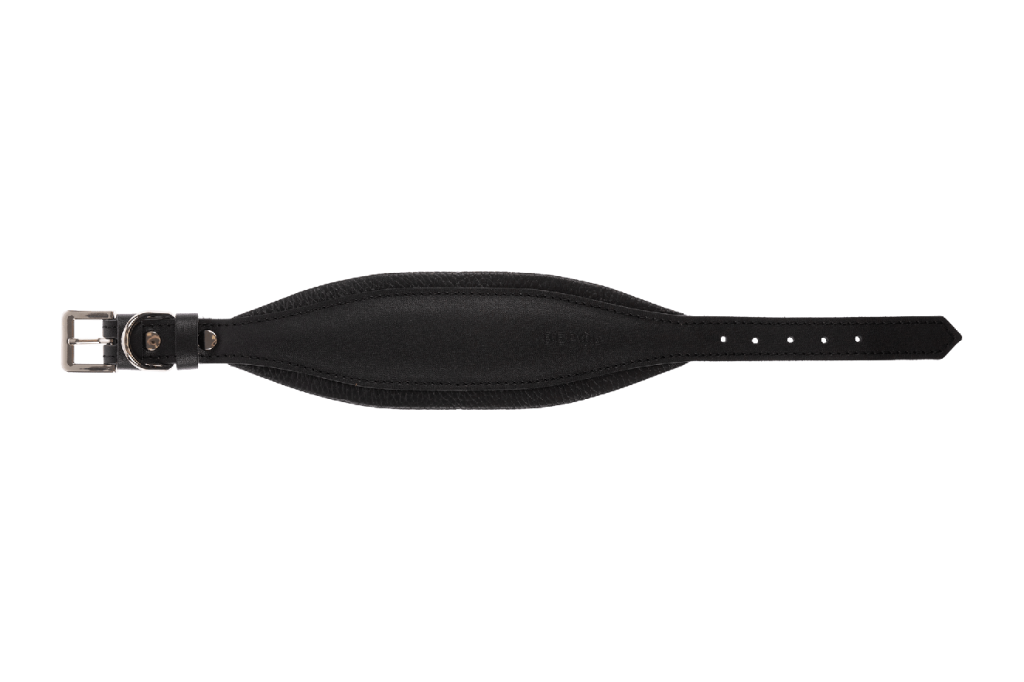 Ошейник с расширением спереди. Выполнен из натуральной кожи двух видов и оснащён мягкой подушкой. Подходит для собак с тонкой длинной шеей.
