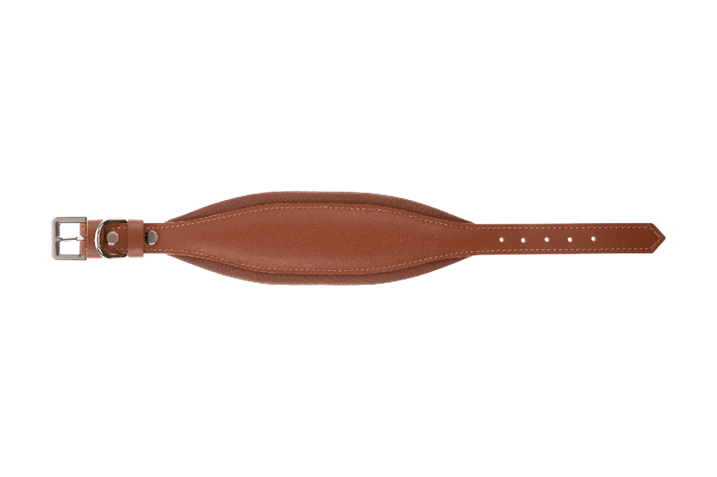 Ошейник с расширением спереди. Выполнен из натуральной кожи двух видов и оснащён мягкой подушкой. Подходит для собак с тонкой длинной шеей.