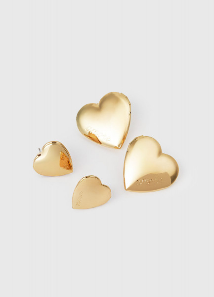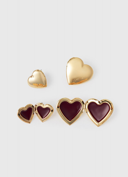 Серьги-локеты в форме сердца, 2 пары, Золотой