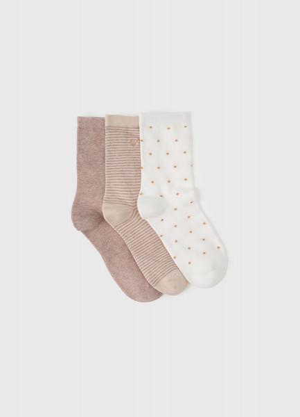 Носки с рисунком и вышивкой, 3 пары, Бежевый