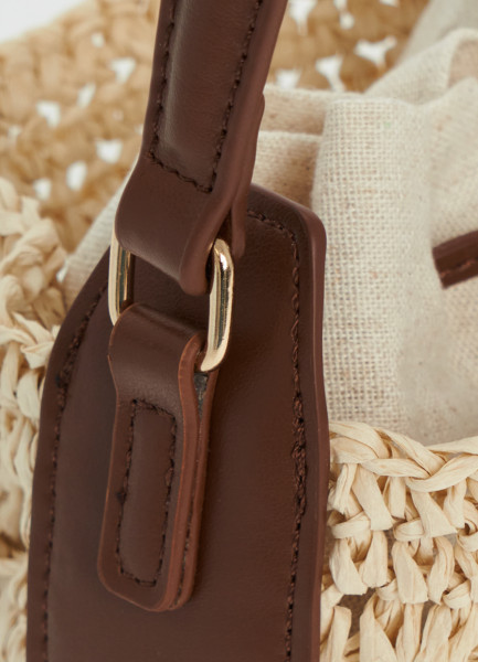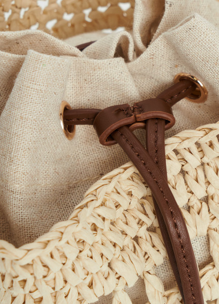 Верх: 65% Бумажная соломка, 35% Полиуретан; Мешок для вещей: 80% Вискоза, 12% Лен, 8% Лиоцелл