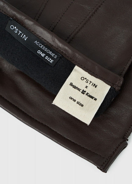 Перчатки из натуральной кожи O'STIN x Яндекс Книги, Коричневый