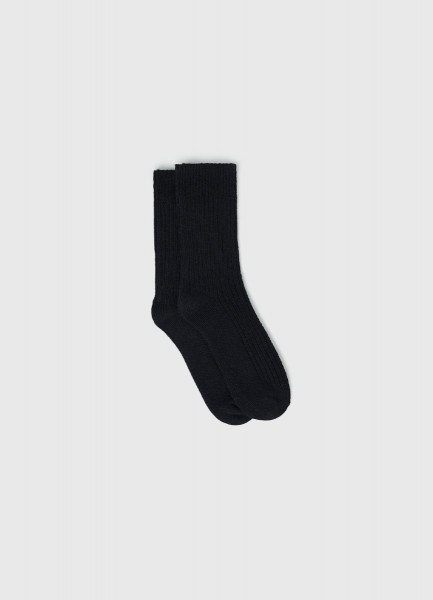 Высокие носки с шерстью в рубчик, Синий