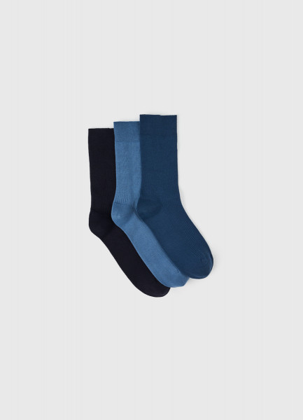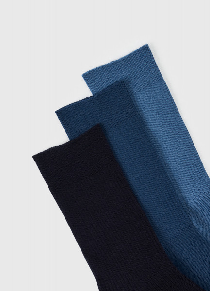 Высокие носки в рубчик, 3 пары, Синий