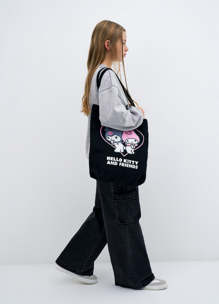 Сумка-шоппер с принтом для девочек, Черный