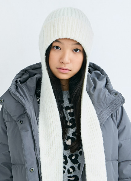 Вязаная шапка-ушанка для девочек, Белый
